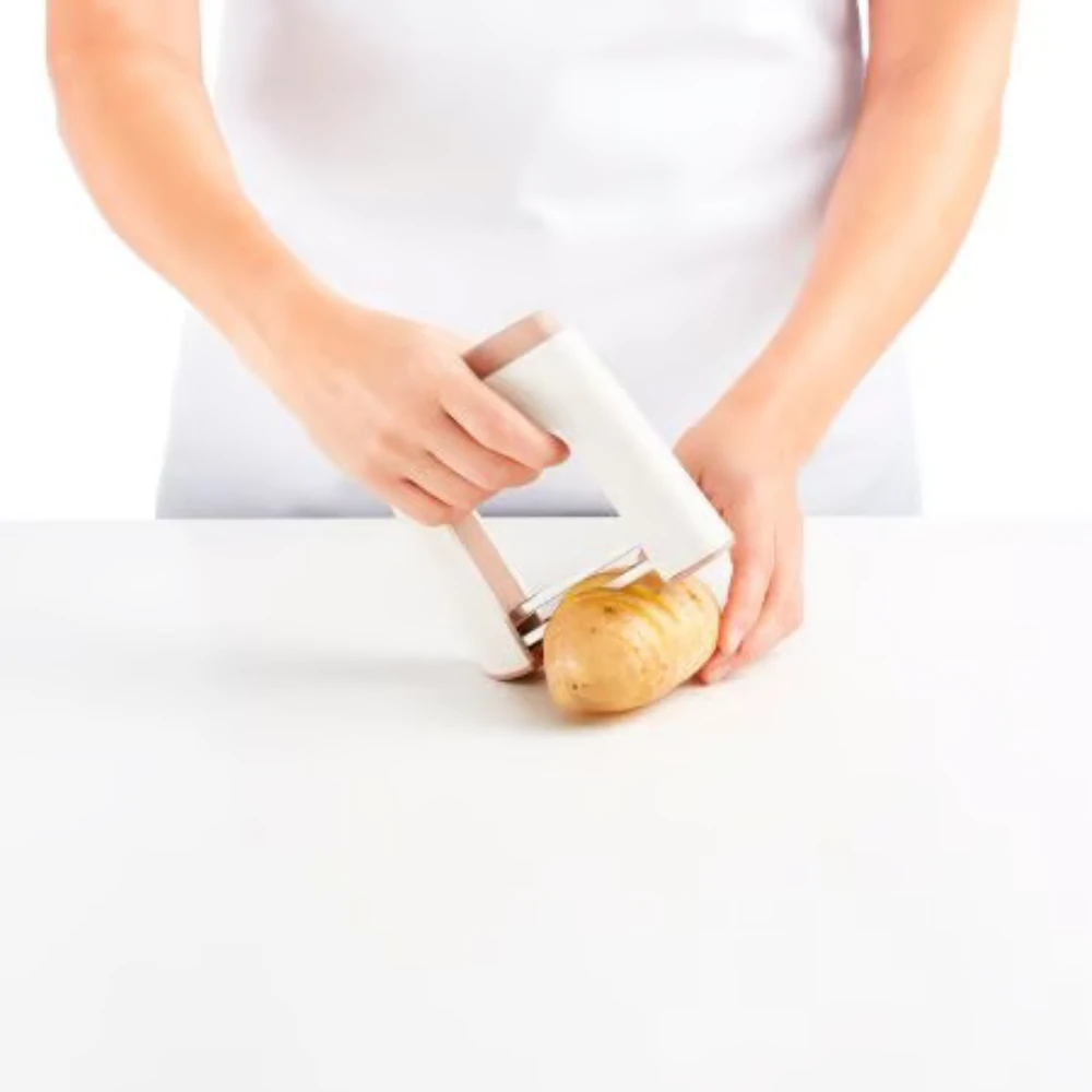 ابتكر أطباق خضروات لذيذة ومقرمشة بسهولة! أداة مخصصة لتقطيع الخضروات بأسلوب Hasselback الشهير، تمنحك شرائح دقيقة ومتناسقة لتحضير وصفات مبتكرة ومليئة بالنكهة.