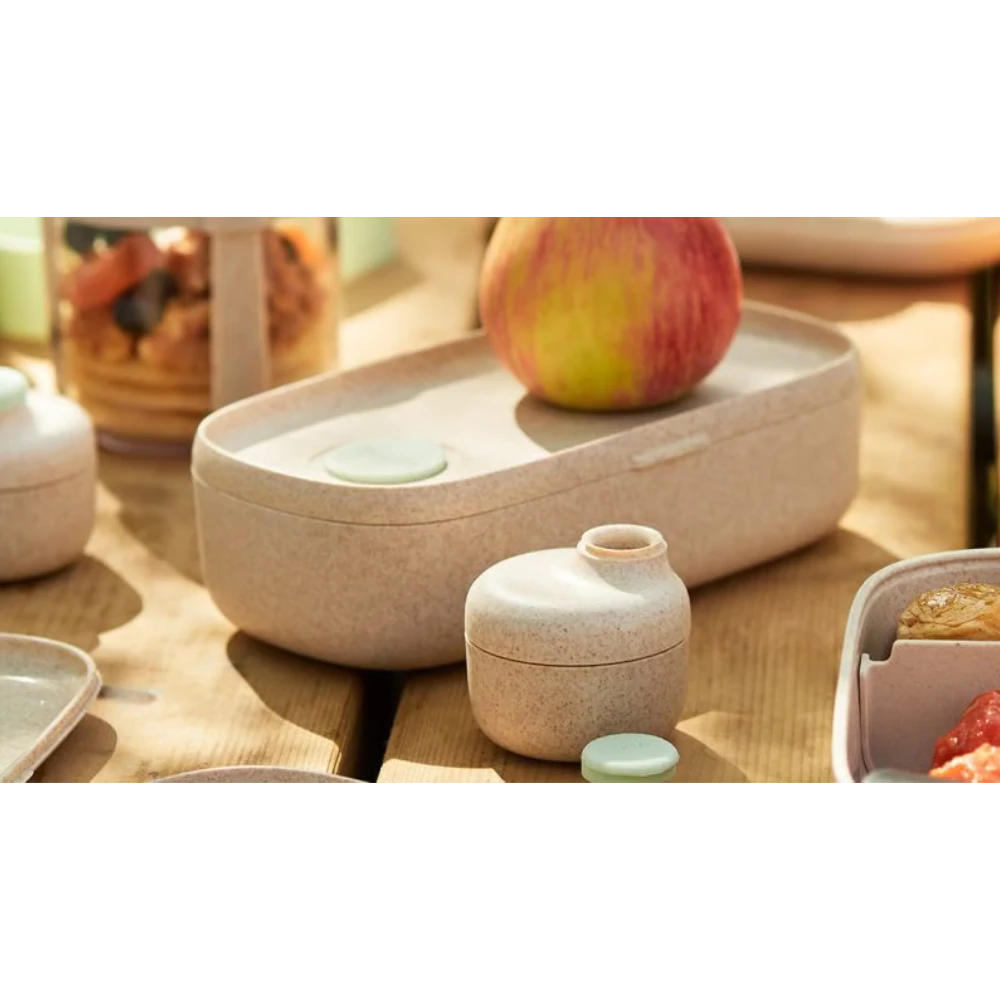 الخامة: مزيج عضوي من ألياف الخشب والبولي بروبيلين القابل لإعادة التدوير 100%، آمن للطعام.