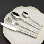 شنطة معالق متكاملة بتصميم فاخر وجودة عالية، مثالية للعزومات الفخمة والمناسبات الخاصة. مصنوعة من ستانلس ستيل 18/10 المقاوم للصدأ، وتأتي داخل شنطة أنيقة للتخزين والتنظيم.