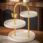 تصميم أنيق من ثلاث طبقات لتقديم الكحك والحلويات بشكل مرتب وجذاب.