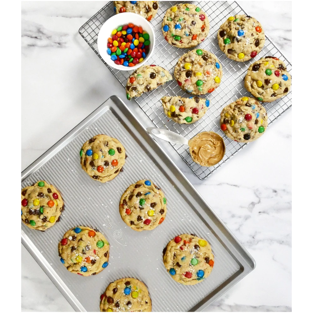 استمتع بخَبز احترافي مع صينية الكوكيز الكبيرة غير اللاصقة – تصميم مبتكر يتيح لك نقل الكوكيز المخبوزة حديثًا من الصينية إلى رف التبريد بسهولة وسلاسة. مثالية لكل محبي الخَبز، سواء كنت بتجهز جلسة كوكيز ليلية أو بتحضر لحفلة أعياد!