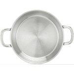 مصنوع من فولاذ مقاوم للصدأ 18/10 مع تشطيب خارجي غير لامع (مات).مزوّد بمقابض أنيقة من الستانلس ستيل لراحة وأمان أثناء الاستخدام.يأتي مع غطاء من الزجاج المقاوم للحرارة وحافة من الستانلس ستيل.