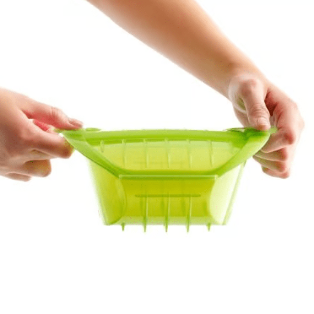 دلوقتي تقدر تطبخي وجبات أكبر أو حتى شوربة صحية في الميكروويف بكل سهولة مع طباخة البخار العميقة المصنوعة من 100% سيليكون بلاتيني. مثالية لتحضير وصفات لذيذة في 3 خطوات بسيطة، وتكفي حتى شخصين.