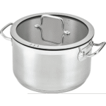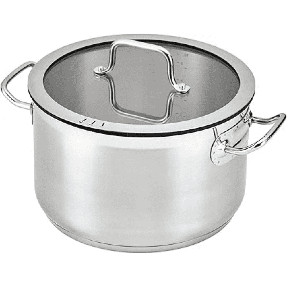 تأتي الحلل بغطاء زجاجي محاط بحافة من الستانلس ستيل والسيليكون لضمان تحكّم مثالي بالبخار أثناء الطهي.