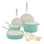 طقم اوانى طهى بلون الازرق-green pan
