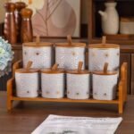 الطقم مصنوع من خامات عالية الجودة تتحمل الاستخدام اليومي وسهلة التنظيف، مما يجعله اختيارًا مثاليًا لكل من يبحث عن التنظيم والأناقة في آنٍ واحد. تصميمه يوفر المساحة على سطح المطبخ ويمنح ترتيبًا واضحًا للتوابل الأساسية.