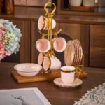 طقم قهوة على حامل بالتمرية – Luxury – Pink