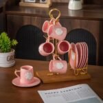 طقم قهوه على حامل – Rosa – Pink * White Rose
