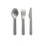 مجموعة أدوات مائدة مدمجة: تحتوي على 3 قطع من الاستانلس ستيل (شوكة، سكين، ملعقة) مع شريط سيليكون يثبتها داخل الغطاء العلوي.
