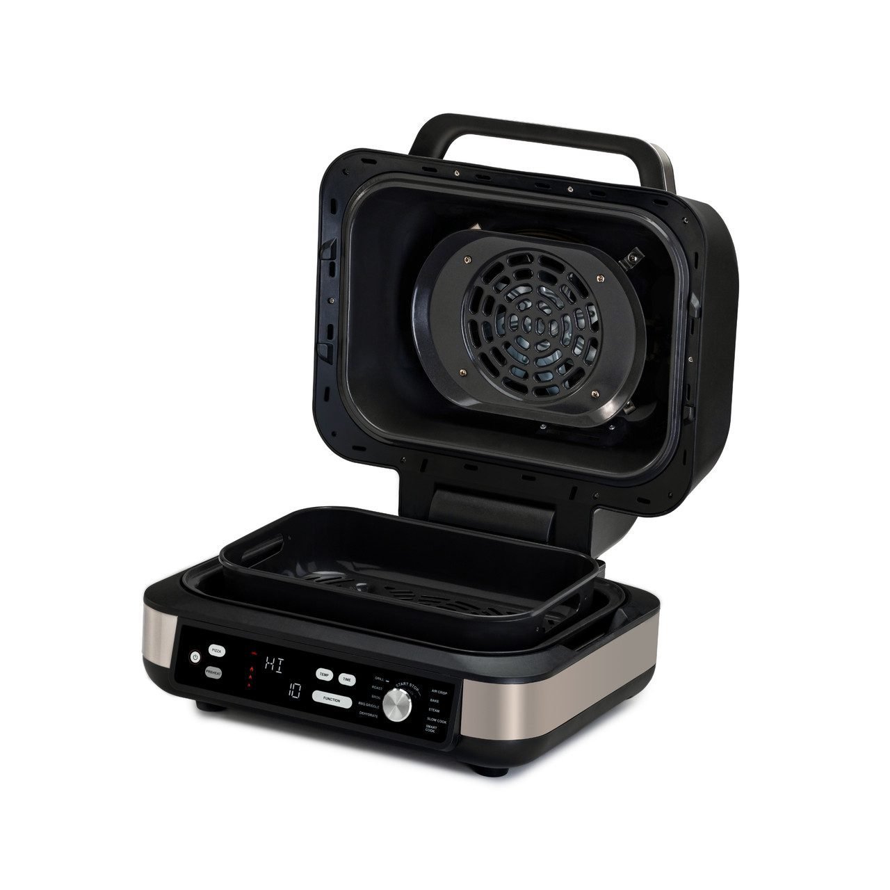 10 Functions: Air fry, grill, roast, broil, griddle, dehydrate, bake, steam, slow cook, and smart cook