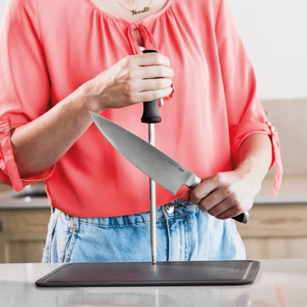 الوصف:أضف لمسة من الاحترافية إلى أدوات مطبخك مع مبراة السكاكين من مجموعة جرافيت بطول 20 سم (8.5 بوصة). صُممت هذه المبراة لتمنحك أداءً موثوقًا وشحذًا فائقًا، مما يجعلها مثالية للحفاظ على جميع سكاكينك حادة وآمنة.