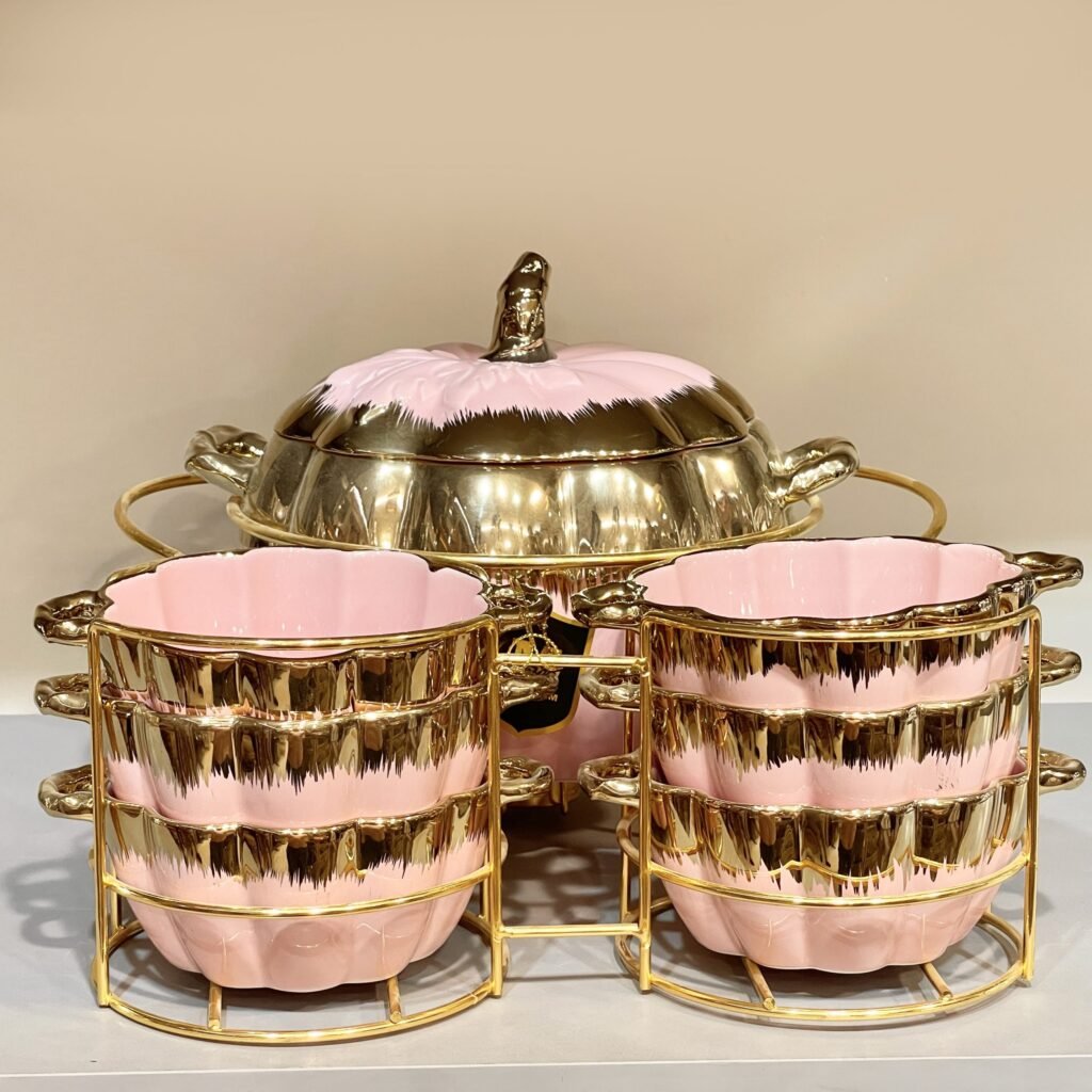 طقم شوربه على حامل – روز – Pumpkin