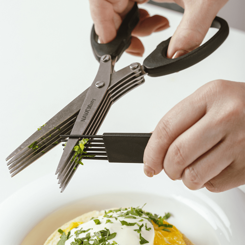 مقص أعشاب من الفولاذ المقاوم للصدأ بخمس شفرات مع مشط تنظيف “ميستي” 19 سم – NAVA