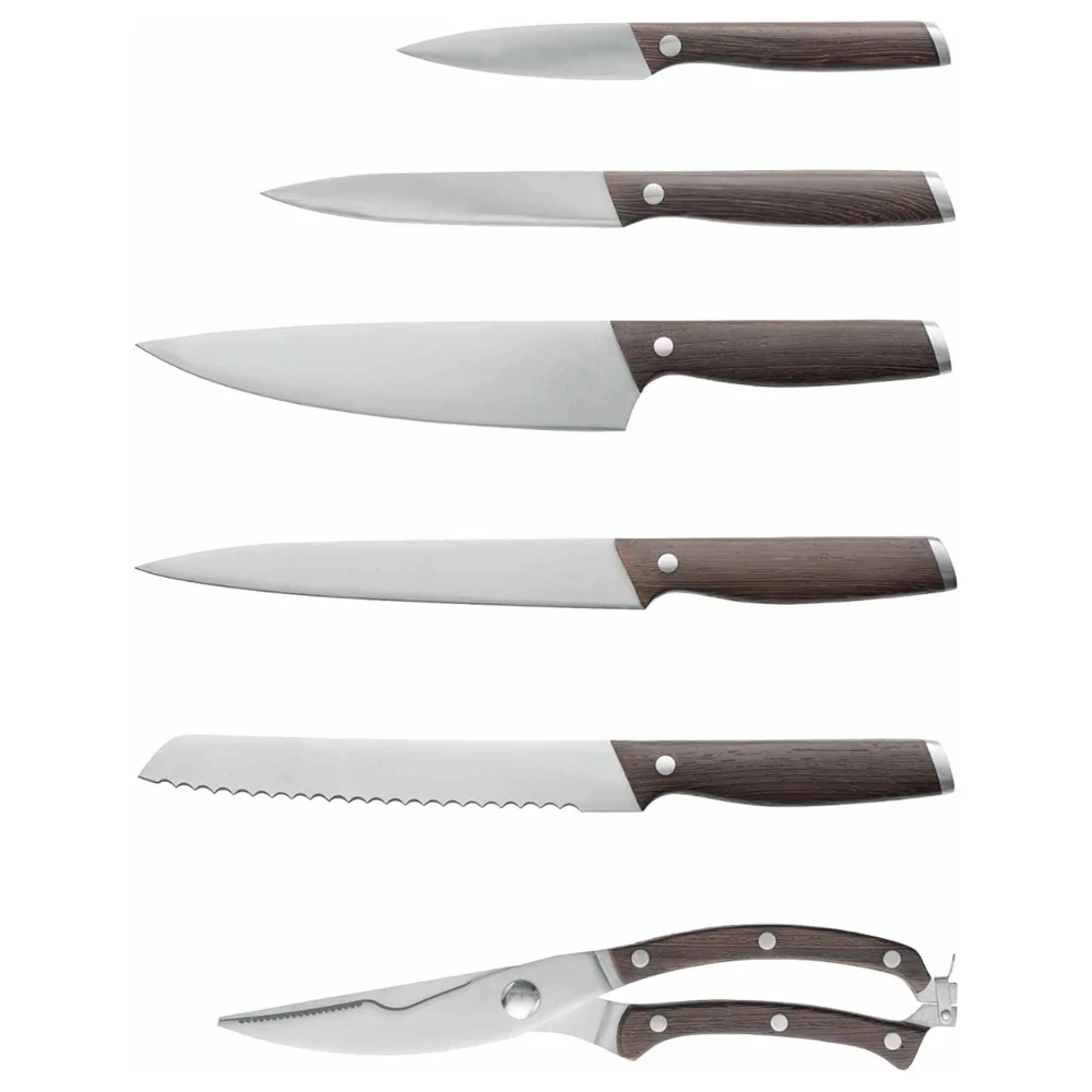 طقم سكاكين 7 قطع – بحامل خشب داكن
