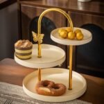تصميم أنيق من ثلاث طبقات لتقديم الكحك والحلويات بشكل مرتب وجذاب.
