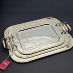 طقم صواني ايطالى 3 قطع – Rect. Flowers Gold – FLOG-600-2-3-4
