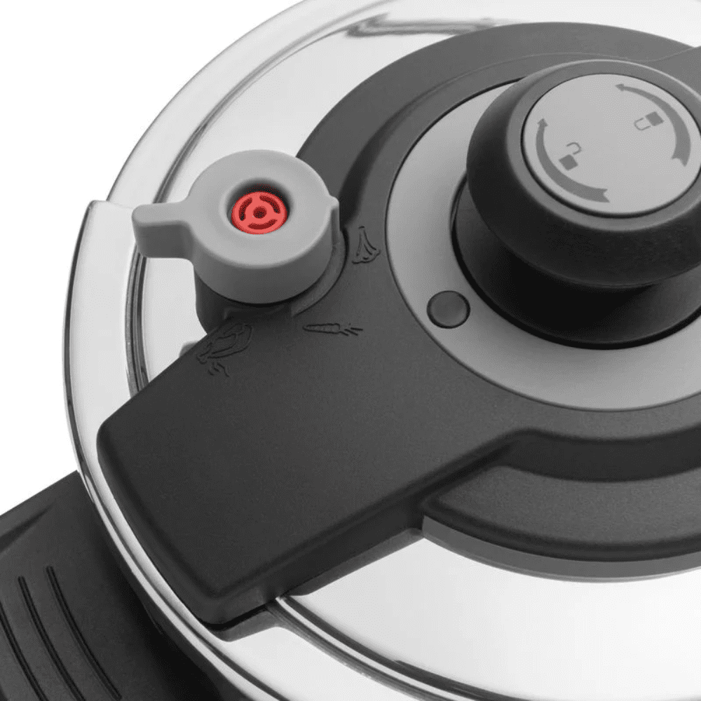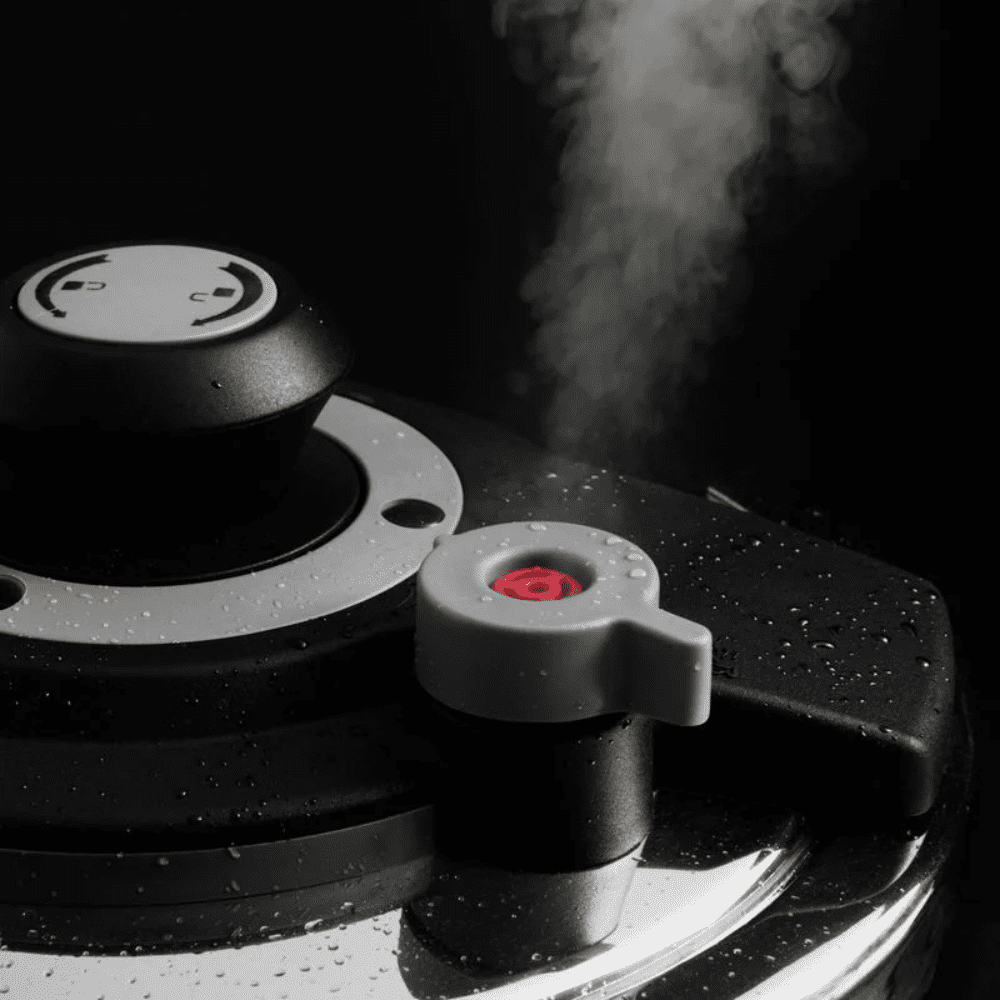 غطاء الضغط: مزوّد بمنظم، صمام أمان، وقفل تلقائي للغطاء