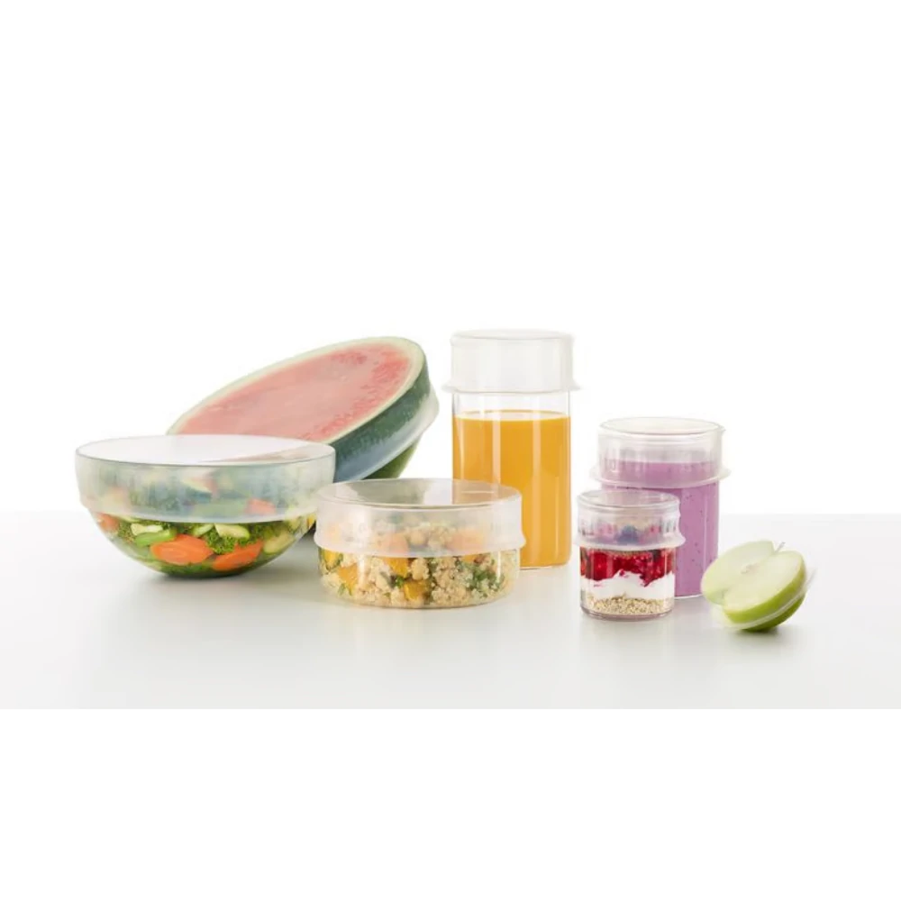 غطاء عملي متعدد الاستخدامات مصنوع من السيليكون بنسبة 100%، يمثل بديلاً صحيًا ومستدامًا لأغطية البلاستيك أحادية الاستخدام مثل النايلون اللاصق أو ورق الألومنيوم. مثالي لحفظ الطعام بشكل آمن ومنظم.