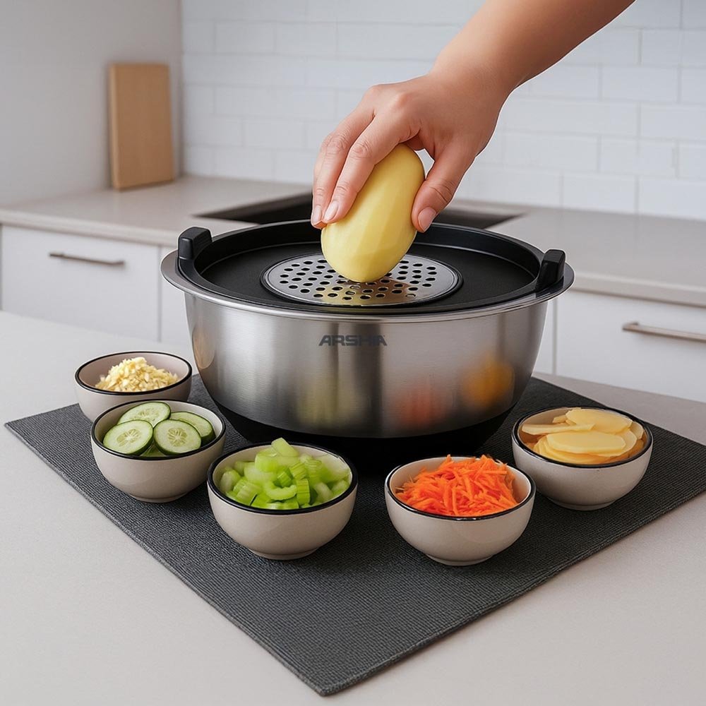 Upgrade your kitchen with the Arshia 12-piece Stainless Steel Mixing Bowl Set, perfect for mixing, prepping, grating, and storing food.