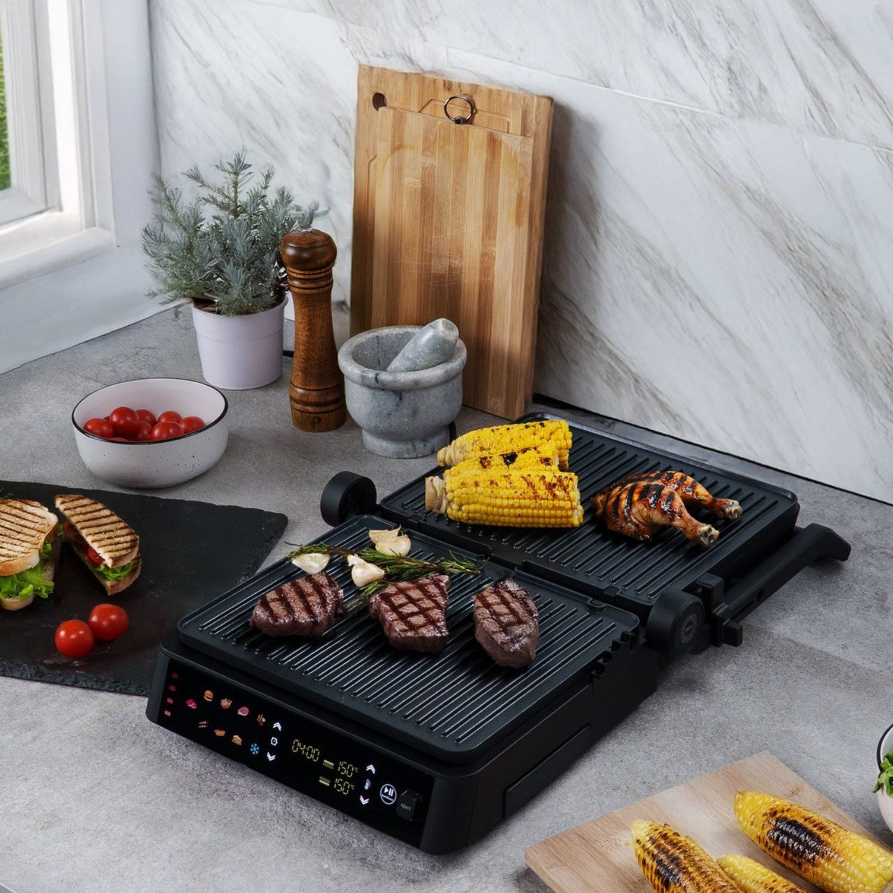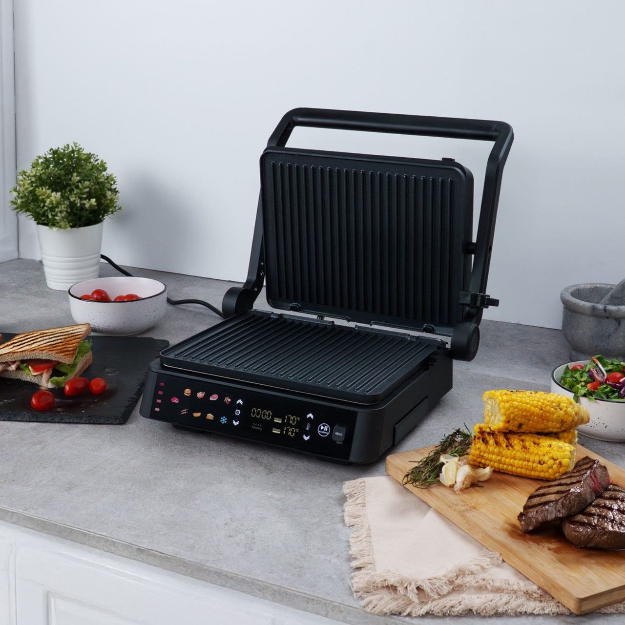 Intelligent Thickness Sensing: The floating hinge automatically adjusts to the thickness of your food, ensuring even cooking for everything from a thin panini to a thick steak.