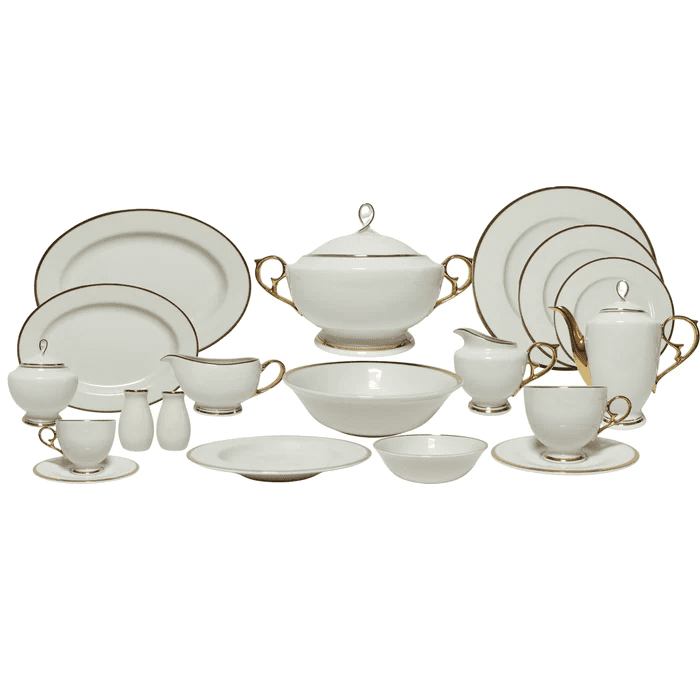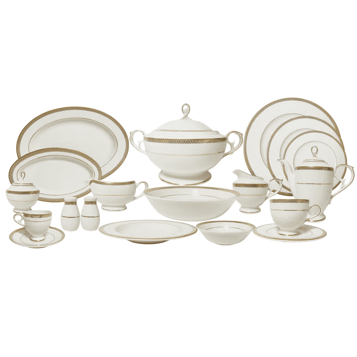 رويال ألفريدو طقم سفرة بورسلين 112 قطعة ابيض وذهبي – MO-009