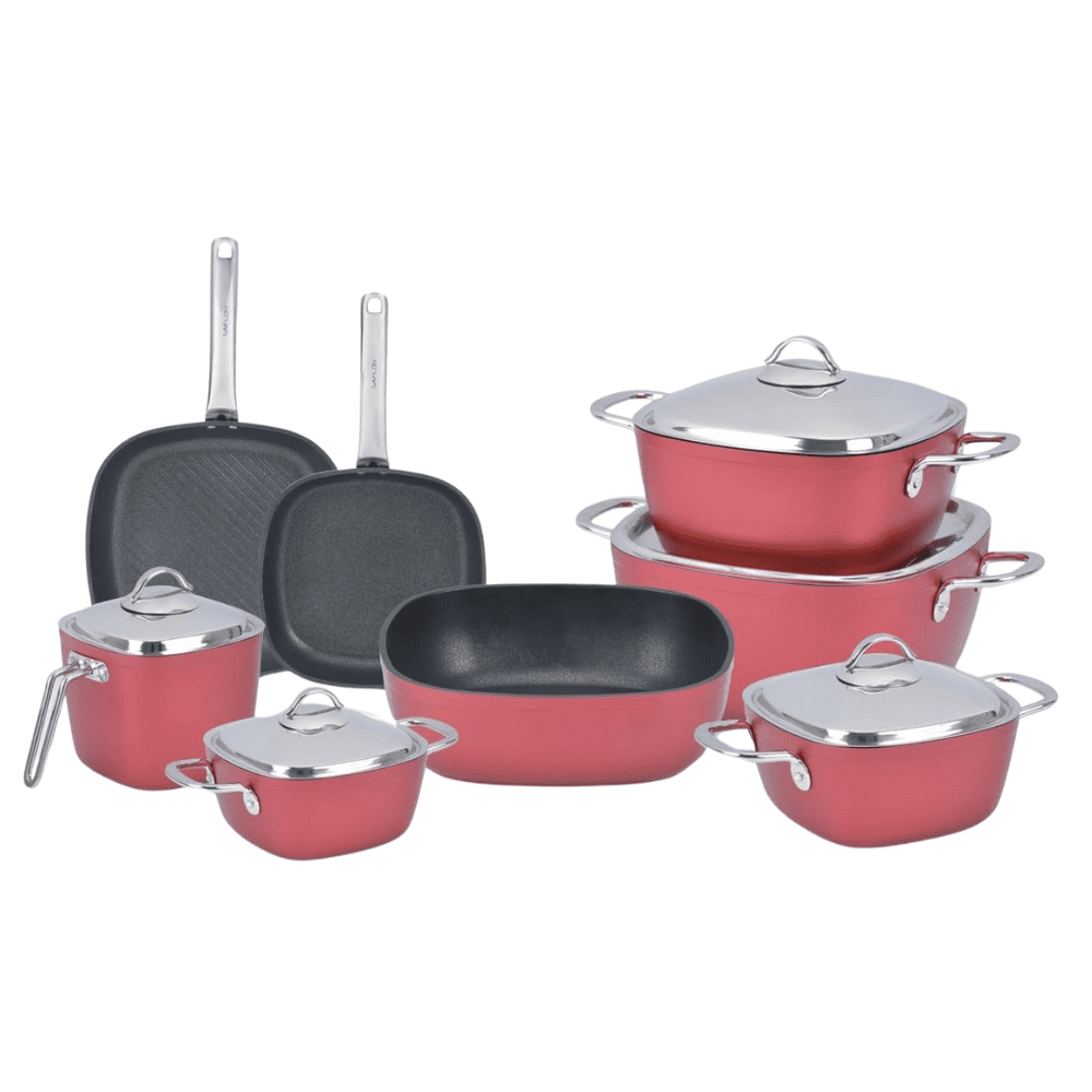 طقم حلل تيتانيوم 13 قطعة مربع احمر – سافلون